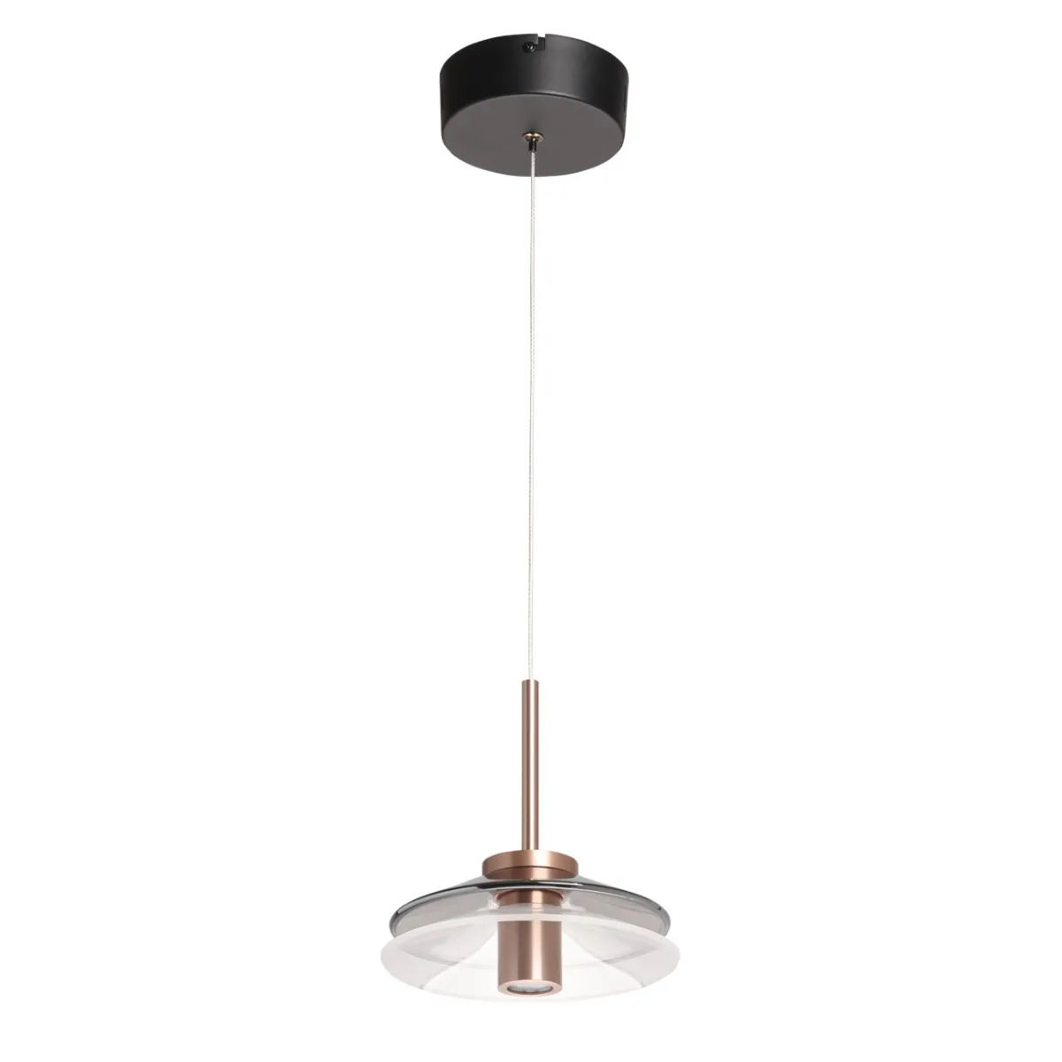 Основание/ металл, сплав алюминия/ медь, черный Плафон/ стекло, акрил/ дымчатое, прозрачный