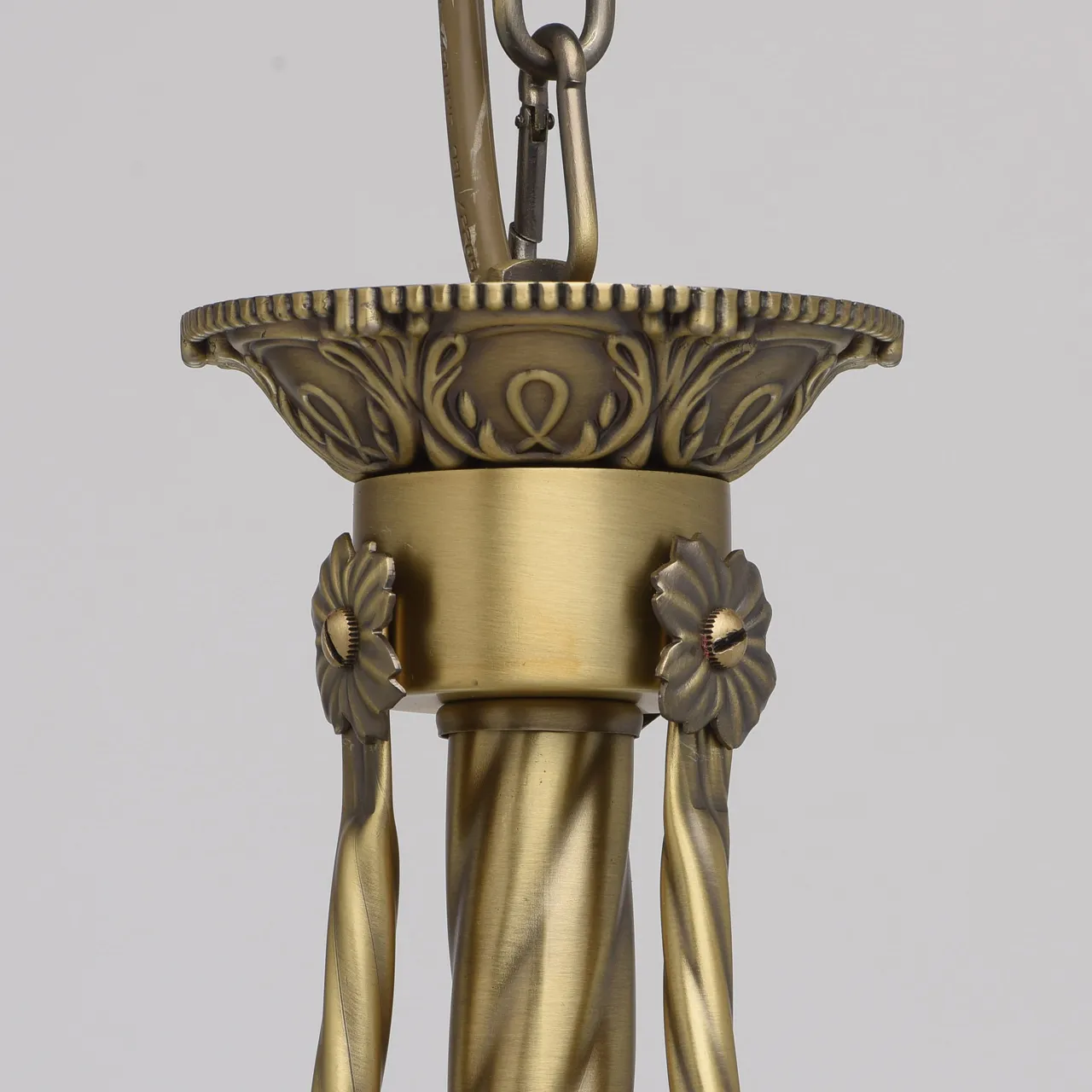 Алюминиевое основание цвета античной бронзы, стеклянные плафоны цвета ванили.