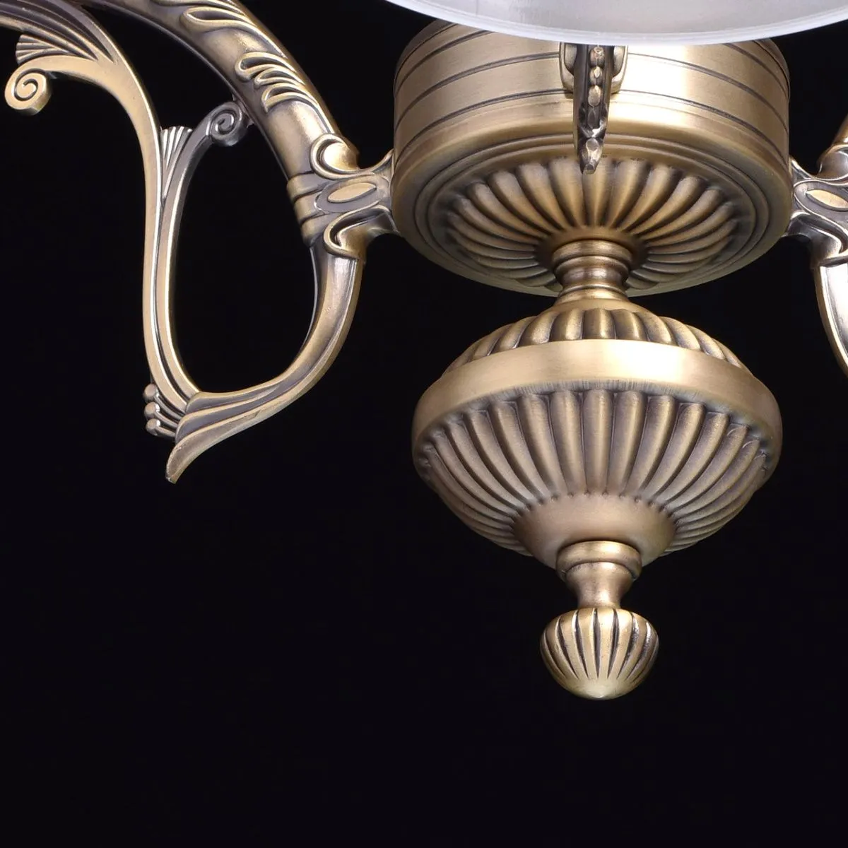 Металлическое основание цвета античной бронзы. Плафоны: стеклянный матовый плафон, обработанный алм