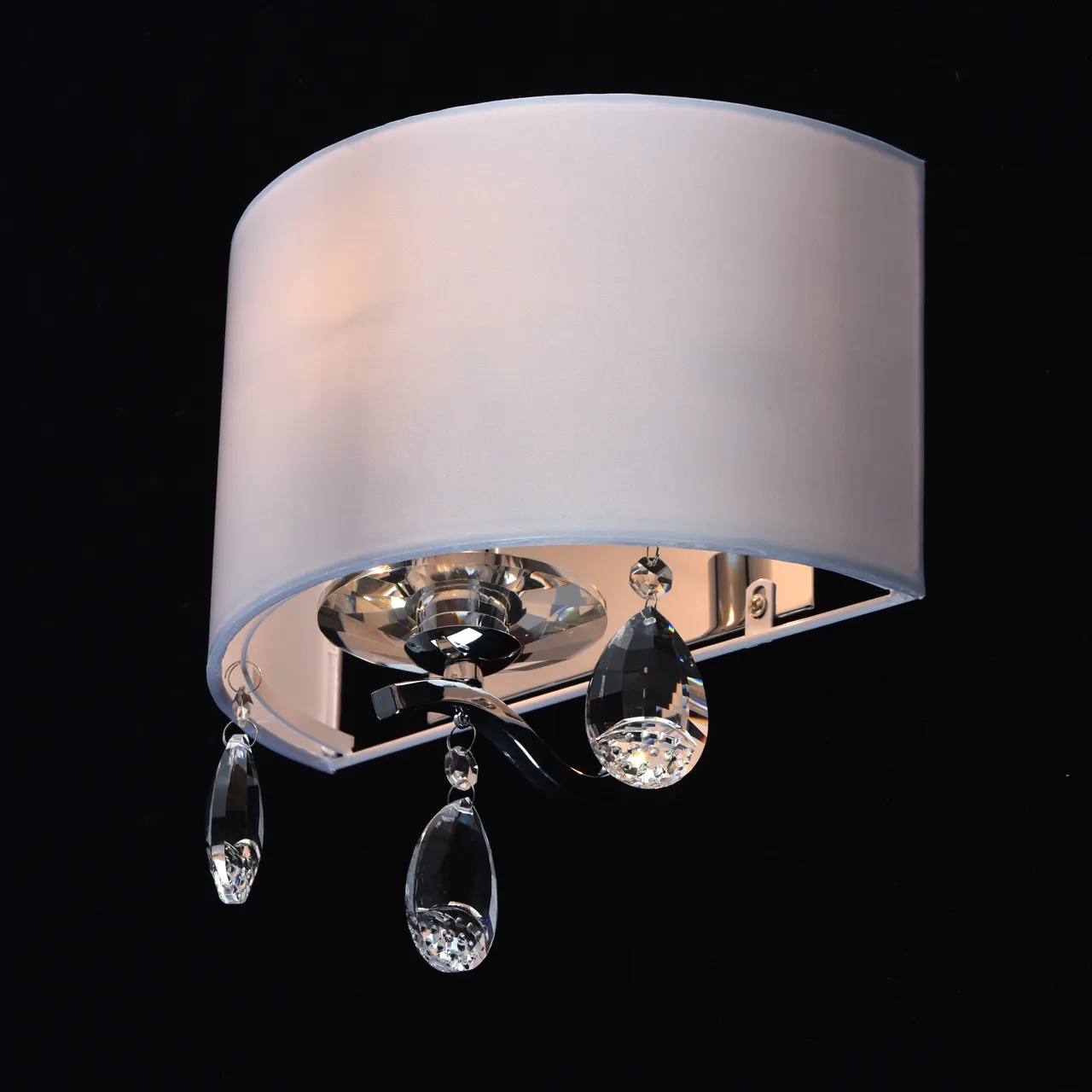 Основание/ металл/ хром. Абажур/атлас/ белый. Декор/прозрачный хрусталь.